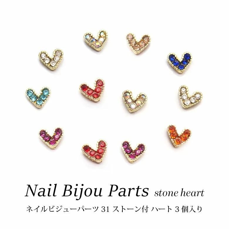 ネイル ジュエリー ビジュー パーツ 31 ストーン付 ハート 各種 3個入り