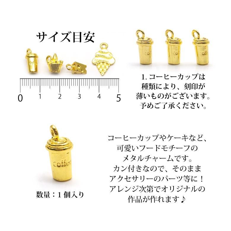 コーヒーカップやケーキなど、可愛いフードモチーフのメタルチャームです。