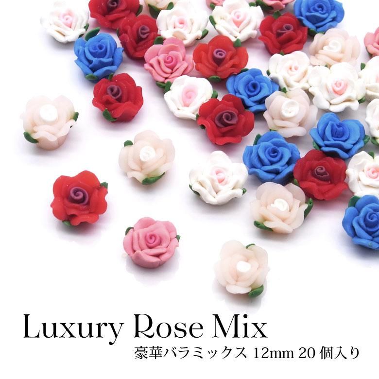 ネイル レジン デコ 豪華バラ ミックス 12mm 約20個入り