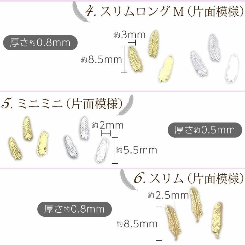 1.スリムロングL(片面模様) 約10.5mm×3mm 厚さ0.8mm