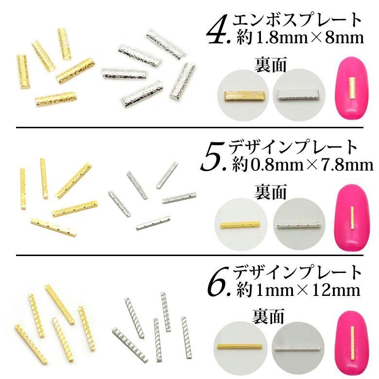 メタルパーツ デザイン ロング プレート スティック 各種 5個入り
