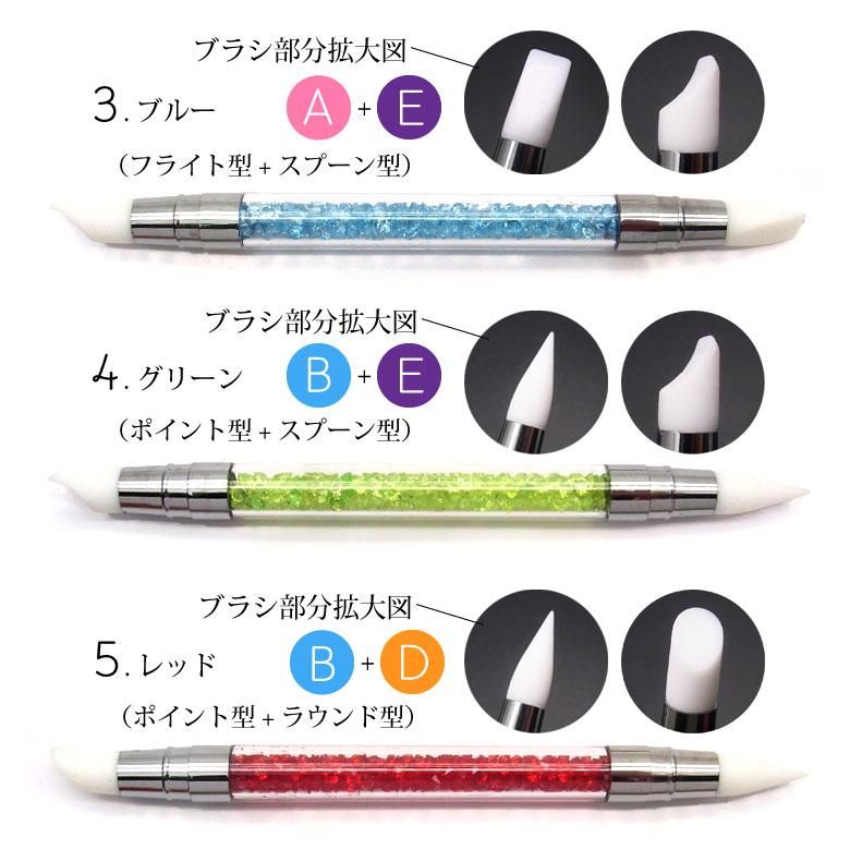 先端の種類は5種類♪1本に2種類のブラシが付いている2WAYタイプです。