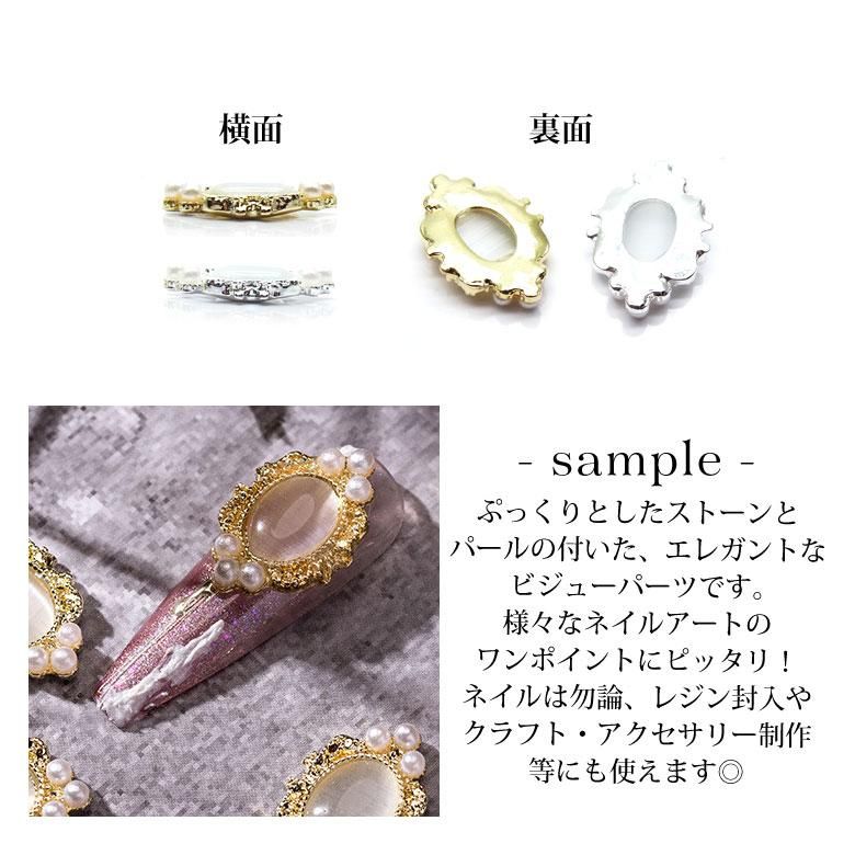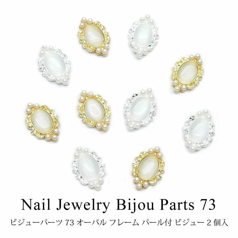 ネイル ジュエリー ビジューパーツ73 オーバル フレーム パール付 ビジュー 2個入り