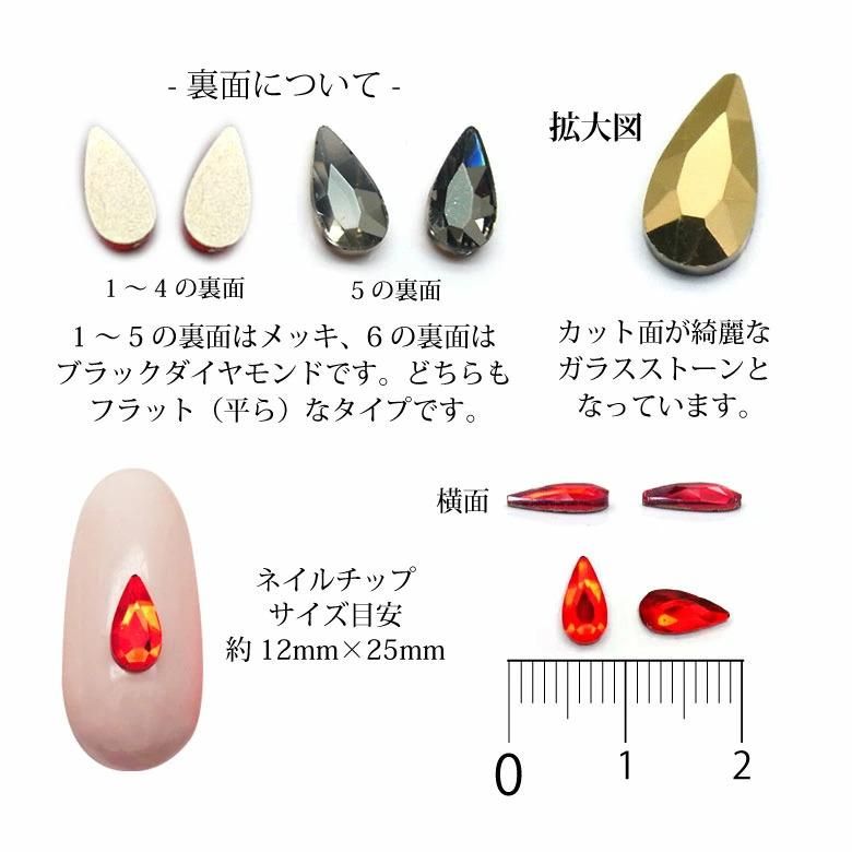 ネイル ガラス ストーン 30 ロング ティア型 5個入り