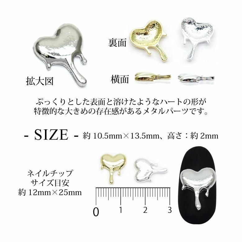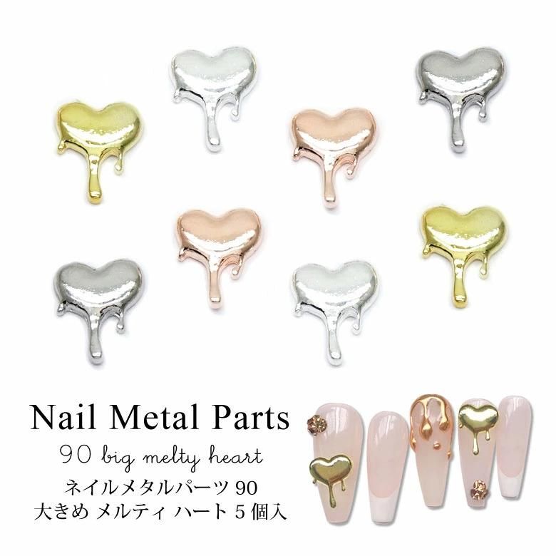 ネイル メタル パーツ 90 大きめ メルティ ハート 5個入り