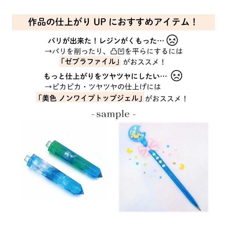 …当店オリジナルのレジン液!クリスタルのような高い透明感とツヤツヤな仕上がりが特徴的です。