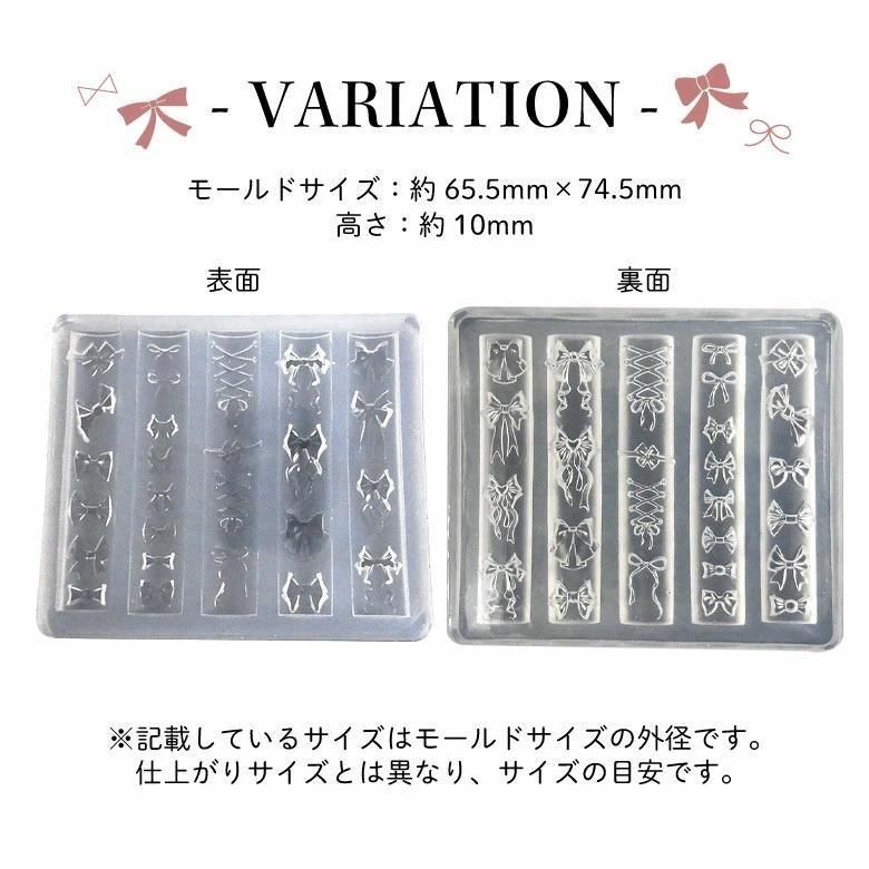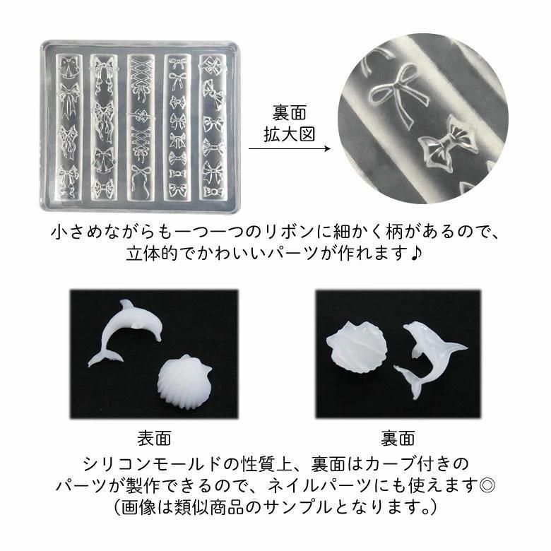 シリコン モールド レジン 型 立体 3D りぼん フリル レース 蝶結び 蝶々結び シンプル ガーリー かわいい ゆめかわ 小さめ 自作パーツ モチーフ UVレジン ハンドメイド ネイル アート