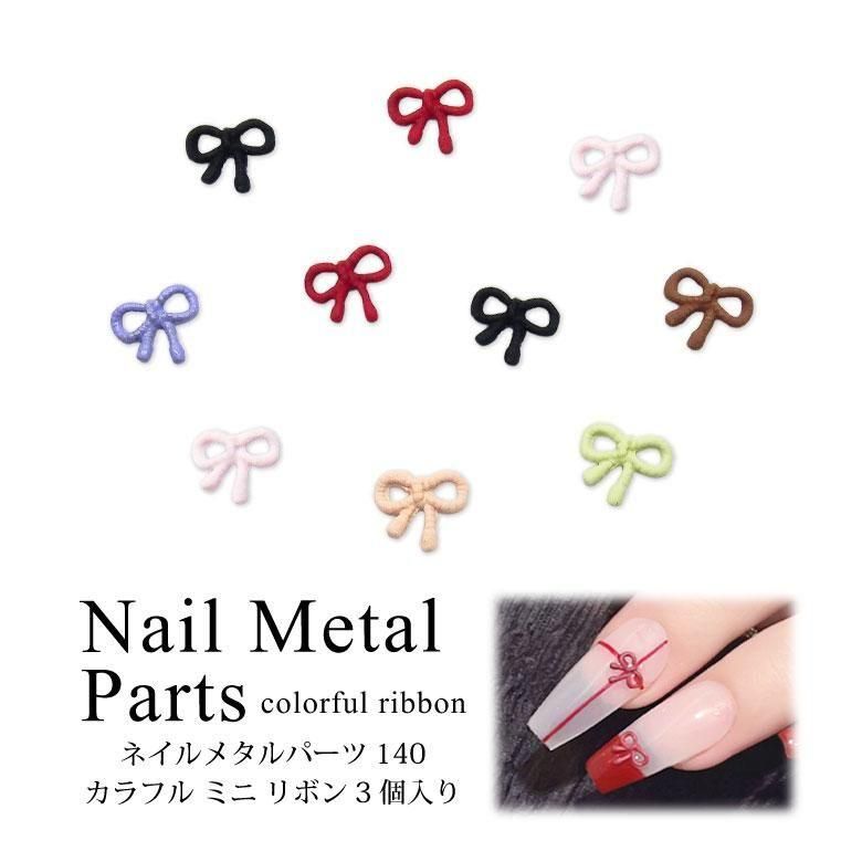 ネイル メタル パーツ カラフル ミニ リボン3個入り 140
