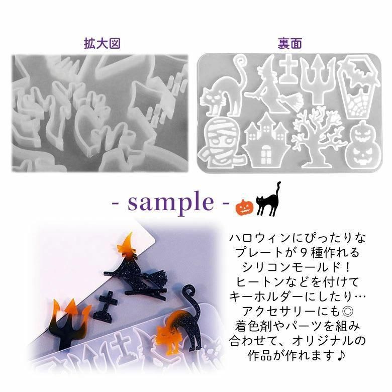 レジン シリコン モールド シリコン型 立体 レジン型 ハロウィーン カボチャ コウモリ 魔女 おばけ アクセサリー チャーム ストラップ ペンダント 推し 推し活 初心者 子供 親子 材料