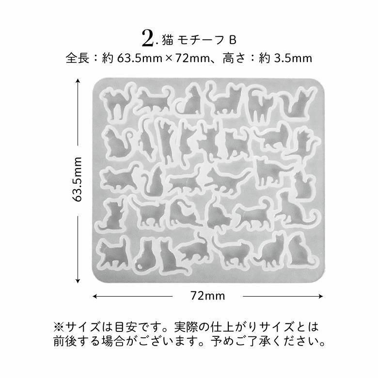 2.猫 モチーフ B…全長:約63.5mm×72mm、高さ:約3.5mm