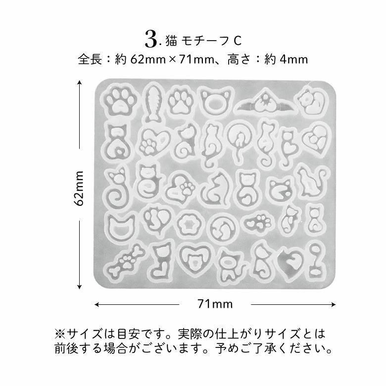 3.猫 モチーフ C…全長:約62mm×71mm、高さ:約4mm