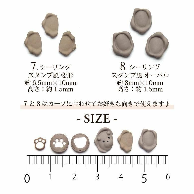 7.シーリングスタンプ風 変形…約6.5mm×10mm、高さ:約1.5mm