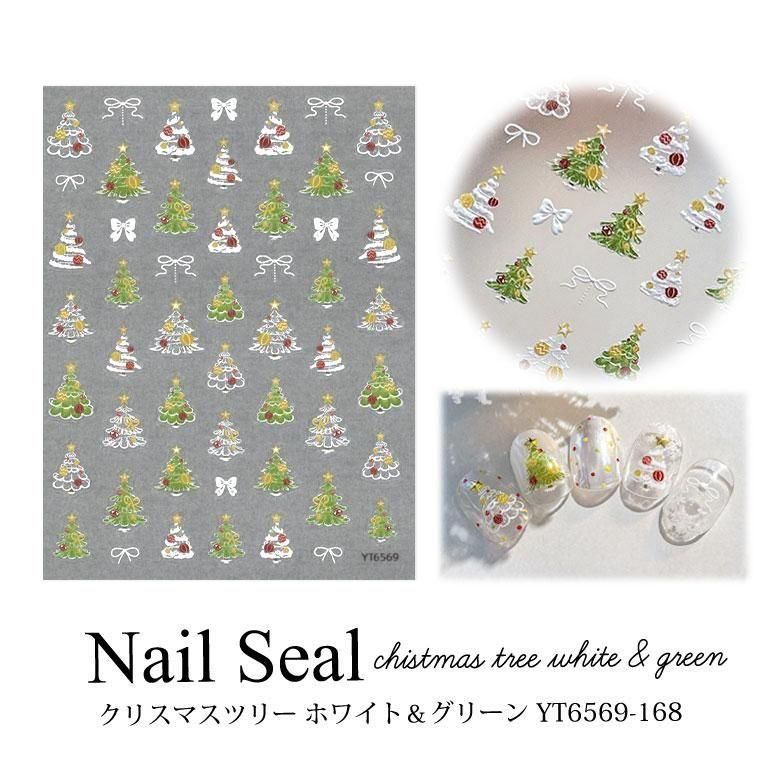 ネイルシール クリスマスツリー ホワイト & グリーン YT6569-168
