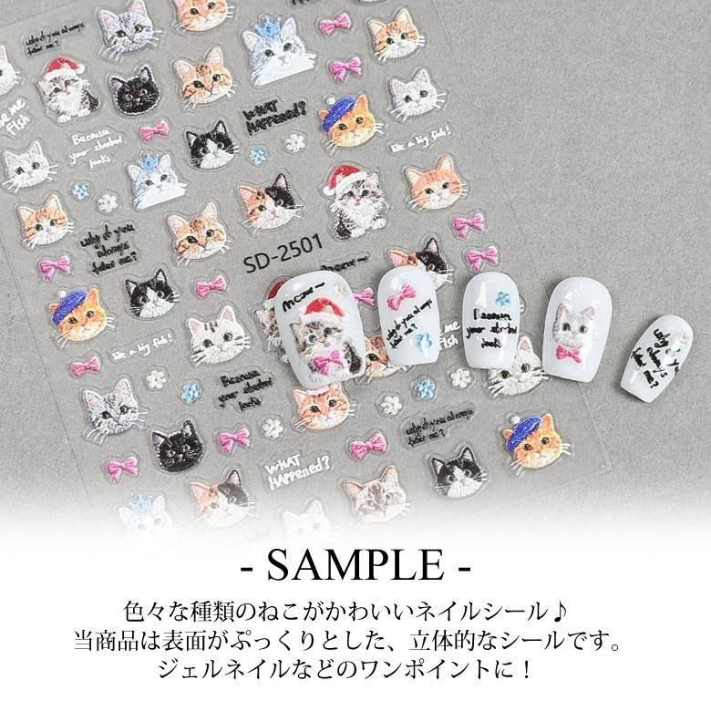 ネイル シール 貼るだけ 立体 3D 5D 韓国 猫 ねこ キャット にゃんこ 冬 クリスマス ガーリー エンボス ラバータイプ 簡単 ワンポイント セルフネイル レジン デコ レジン 封入