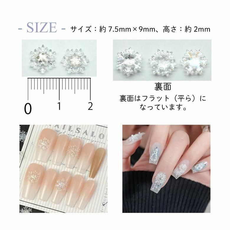 ネイルパーツ 韓国 立体 雪 結晶 スノークリスタル スノー 冬 ウインター 雪花 シンプル 軽量 プラパーツ 樹脂 セルフネイル ワンポイント レジン 封入 貼り付けパーツ ハンドメイド
